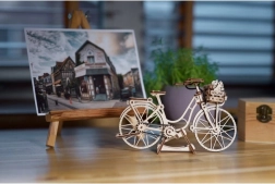 W zestawie znajdują się również drobne figurki kota, psa i kwiatów, które możesz umieścić w koszyku i nadać modelowi osobisty charakter. Naturalne drewno, precyzyjne wykonanie i stabilna konstrukcja czynią z gotowego roweru stylową dekorację i oryginalny prezent. Podczas montażu dodatkowo rozwijasz małą motorykę, cierpliwość i wyobraźnię przestrzenną.
