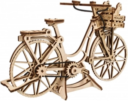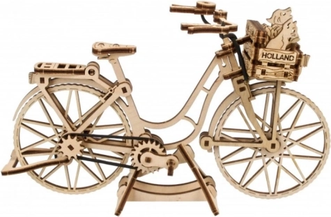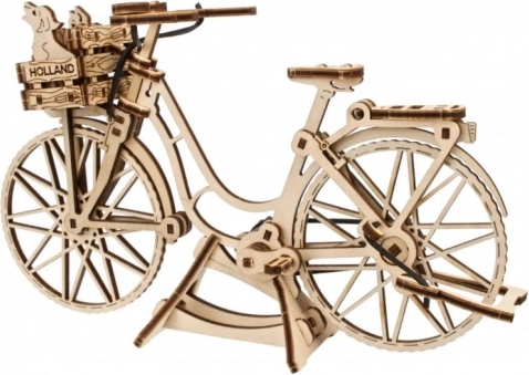 Rower Holland od Ugears wiernie oddaje kultowy miejski bicykl z ulic Amsterdamu – z elegancką ramą, przednim koszykiem i tylnym bagażnikiem. Elementy są precyzyjnie wstępnie wycinane laserowo i czysto do siebie pasują, dzięki czemu model złożysz wygodnie bez kleju w około 1,5 godziny. Po ukończeniu zachwyca realistycznymi funkcjami: obracana kierownica, ruchome pedały z gumowym łańcuchem oraz obracające się koła.