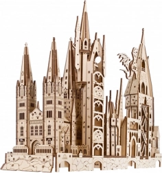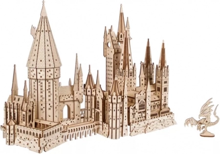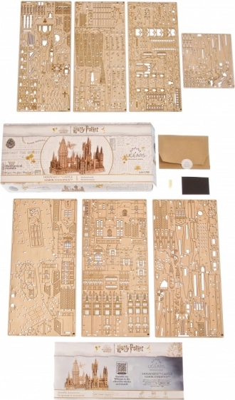 Spraw sobie radość ikonicznym modelem zamku Hogwart, który wiernie oddaje filmowe detale – od majestatycznych wież i wieżyczek, przez dopracowane okna, po dramatyczne linie kamiennego muru. Tylna strona odsłania wnętrza z Wielką Salą, wieżową klatką schodową i tajemniczymi korytarzami. Dzięki laserowo wycinanym elementom montaż jest precyzyjny, przyjemny i niewymagający kleju.