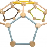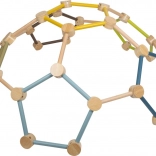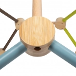 Wstępnie zmontowane elementy przyspieszają instalację. Kolorowe drążki i naturalne drewno świetnie wpasują się w pokój dziecięcy.