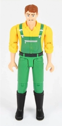 Rozszerz swoją farmową scenę o szczegółowo wykonaną figurkę farmera Bruder bworld. Ubrana w roboczną koszulę i spodnie, oferuje świetną zabawę dzięki w pełni ruchomym kończynom i głowie. Dłonie figurki mogą pewnie chwytać akcesoria lub kierownice pojazdów, dzięki czemu doskonale pasuje do traktorów, maszyn i innych zestawów Bruder.