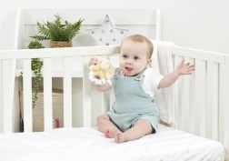 Stonowany dźwięk grzechotki przyciąga uwagę, a jednocześnie nie przeciąża wrażliwego słuchu niemowlęcia.