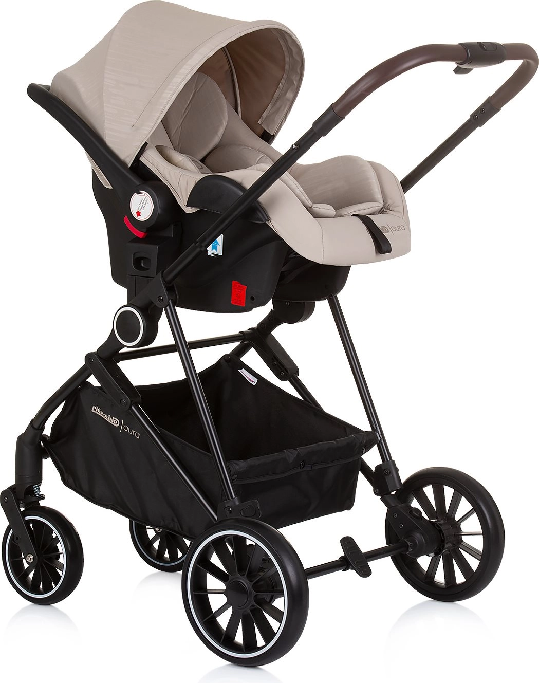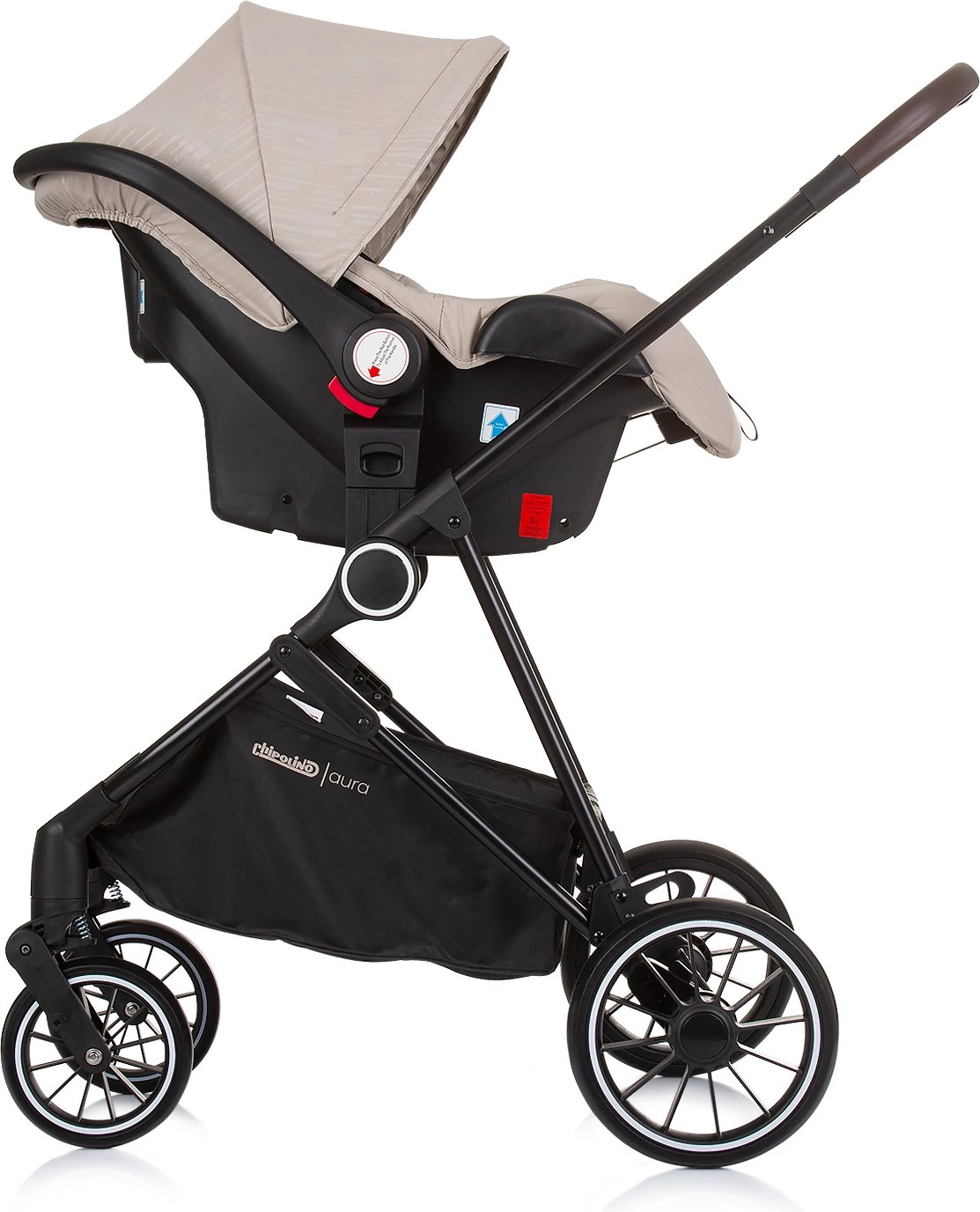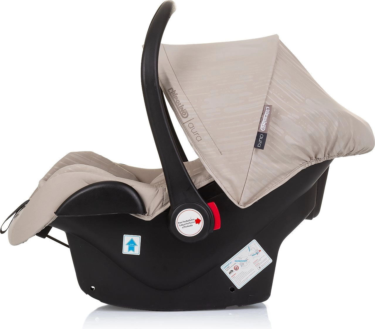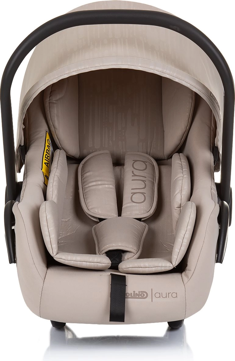CHIPOLINO AURA i-Size to kompaktowy i wygodny fotelik dla niemowląt od 40 do 85 cm (do 13 kg). Oferuje miękkie podparcie głowy i ciała dla noworodków, wyjmowaną wkładkę 3D redukującą nacisk na plecy i pas oraz wyściełany 3‑punktowy pas w kształcie litery Y. Atutem jest także bujająca podstawa do spokojnego usypiania poza pojazdem oraz odpinana budka chroniąca przed słońcem.