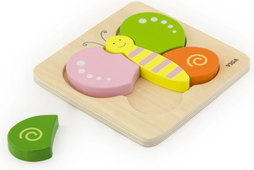 Przedstawiamy drewniane puzzle w kształcie motyla od marki Viga. To puzzle jest idealne zarówno do użytku domowego, jak i do przedszkoli.