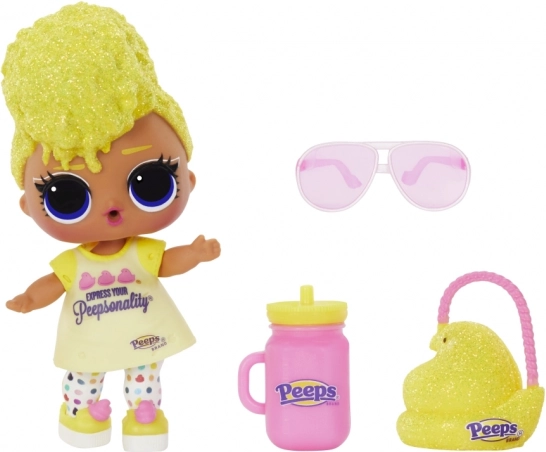 Błyszczące detale, różowe i żółte tony oraz tematyczne akcesoria łączą kultowe słodycze PEEPS z unikalnym wyglądem laleczek L.O.L. Surprise.