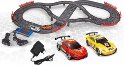 Ciesz się emocjonującymi wyścigami z torem z serii Racing Collection. Zestaw zawiera 2 samochody wyścigowe, 2 ręczne kontrolery, most z akcesoriami oraz zasilacz sieciowy EU. Łączna długość trasy 440 cm i wymiary zestawu 120 × 100 × 12 cm gwarantują mnóstwo zabawy dla małych i dużych miłośników prędkości.