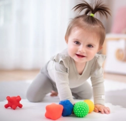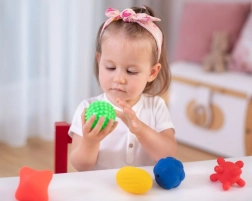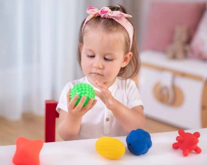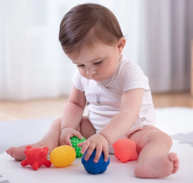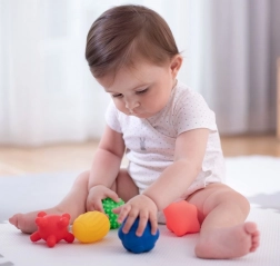 Każda piłeczka ma unikalną powierzchnię, która stymuluje dotyk i motywuje dzieci do odkrywania, ściskania i chwytania.