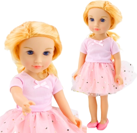 Lalka z długimi blond włosami i elegancką różową sukienką to unikalna zabawka, która zachwyci każdą dziewczynkę. Gęste włosy wprost stworzone do czesania i stylizacji, co wspiera dziecięcą wyobraźnię i zręczność.