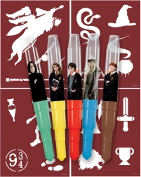 - Licencjonowane motywy Harry Potter – domy, Insygnia Śmierci, Znikacz, okulary z blizną i inne symbole ze świata magii.