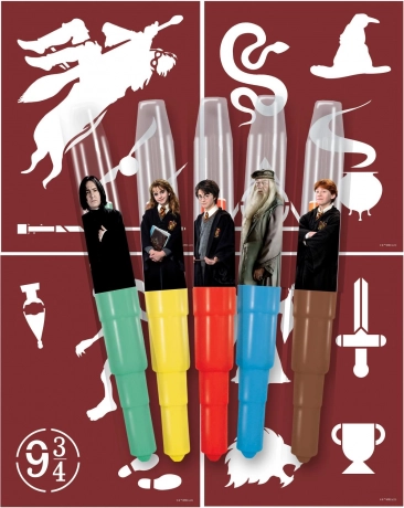 Stwórz własne magiczne obrazki z pisakami dmuchanymi inspirowanymi światem Harry’ego Pottera. Zestaw zawiera 6 kolorowych pisaków dmuchanych oraz szablony z ikonicznymi motywami – domy Hogwartu, Insygnia Śmierci, Znikacz oraz okulary z blizną. Wystarczy włożyć pisak do uchwytu, dmuchnąć i w mgnieniu oka wyczarować efekt natrysku.