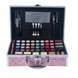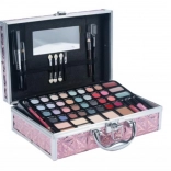 Stylowy różowy kosmetyczny kuferek z kompletnym wyposażeniem do makijażu na co dzień i w podróży. Oferuje 24 cienie do powiek, brokaty i błyszczyki do ust, róże i pudry, praktyczne pędzle i aplikatory oraz wbudowane lusterko. Solidne wykonanie i przejrzyste przegródki zapewniają, że Twoja kosmetyka będzie zawsze pod ręką i perfekcyjnie uporządkowana.