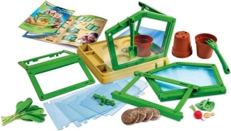 Ten edukacyjny zestaw w prosty i atrakcyjny sposób przybliża dzieciom podstawy botaniki. Przezroczysty szklarnik z regulowanym dachem pomaga kontrolować wilgotność i temperaturę, dzięki czemu świetnie nadaje się do pierwszych eksperymentów uprawowych w domu.