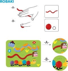 - Stymulacja dotyku dzięki różnorodnym manipulacjom, takim jak gniecenie, ściskanie i wałeczkowanie