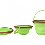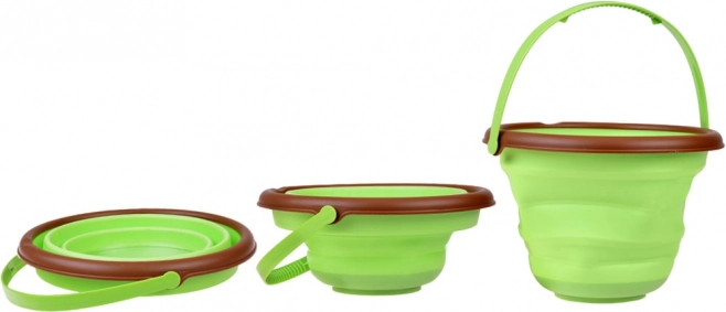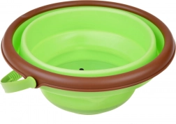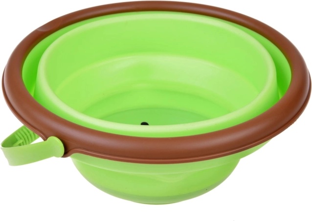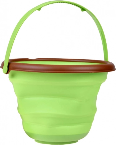 Wiaderko złożysz do płaskiej formy o wysokości około 5 cm, dzięki czemu z łatwością zmieści się w plecaku lub wózku. Idealne rozwiązanie na wycieczki, wakacje i do małych mieszkań.