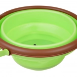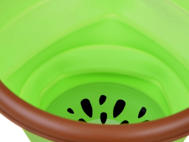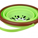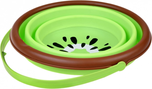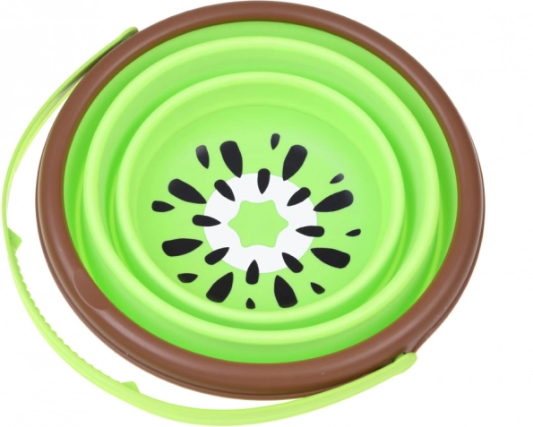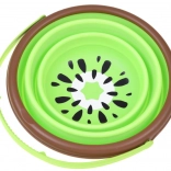 To składane silikonowe wiaderko z owocowym motywem kiwi to świetny towarzysz dla małych odkrywców. Rozkłada się w mgnieniu oka, a po zabawie składa do płaskiego kształtu, dzięki czemu zajmuje minimum miejsca w torbie czy walizce. Miękki, a zarazem wytrzymały materiał jest przyjemny w dotyku i delikatny dla dziecięcych rączek.
