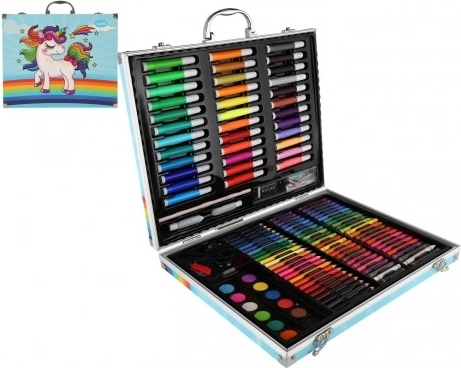Wejdź do świata kreatywności z naszą kreatywną zestawem Jednorożec, która oferuje szeroki wachlarz narzędzi artystycznych zorganizowanych w praktyczną i łatwo przenośną walizkę. Zestaw jest zaprojektowany, aby inspirować dziecięcą wyobraźnię, a jednocześnie zapewniać rozrywkę dorosłym.