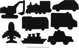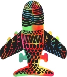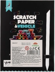 Zestaw zawiera 8 różnych wzorów zdrapywanek, w tym samolot, samochód, pociąg i inne.
