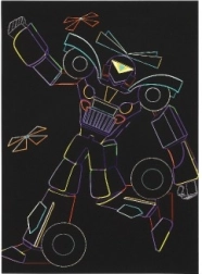 Obrazki do drapania dostarczają zabawy i rozwijają kreatywność zarówno u dzieci, jak i dorosłych. Wystarczy użyć dołączonego rysika, aby odkryć kolory ukryte pod czarną warstwą. Zestaw zawiera cztery arkusze w formacie A4 z motywami ulubionych Transformers.