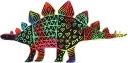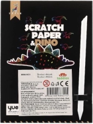 Zestaw zawiera 9 obrazków do drapania z motywami dinozaurów.