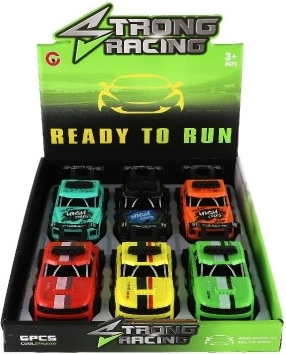 Plastowy samochód wyścigowy na napęd cierny, kolorowy mix w pudełku 16 cm, 6 szt.