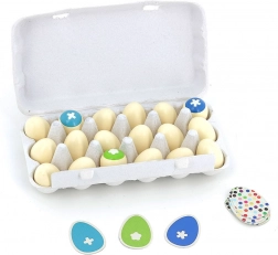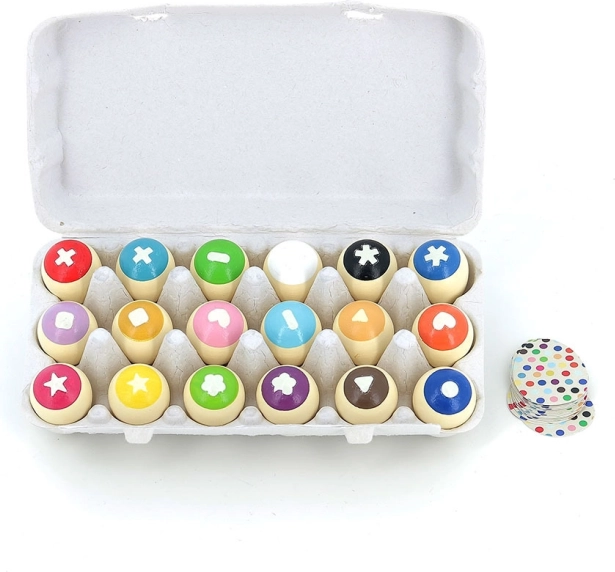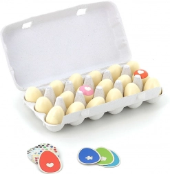 - 18 kart w kształcie jajka z różnymi symbolami i kolorami