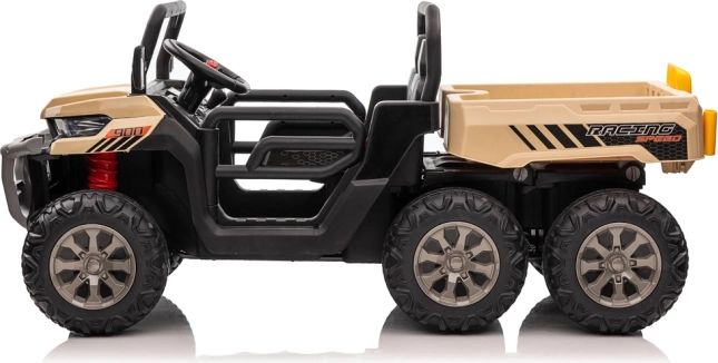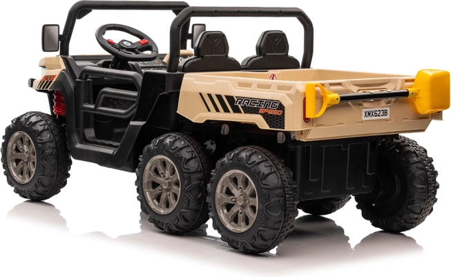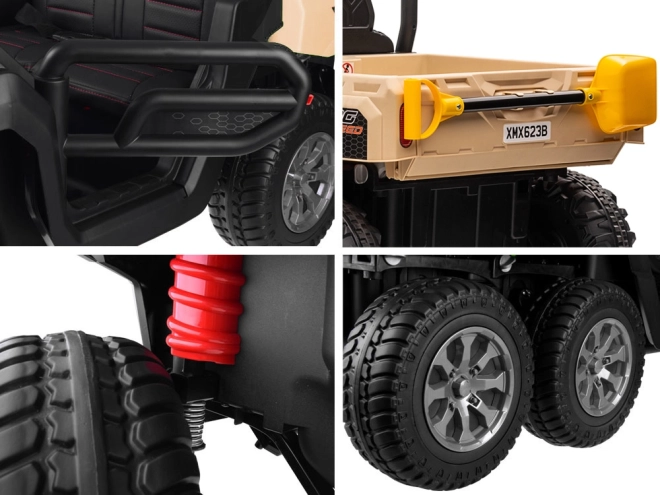 - Praktyczność: 6 kół dla stabilności, elektryczna wywrotka do przewozu zabawek, liści i drobiazgów