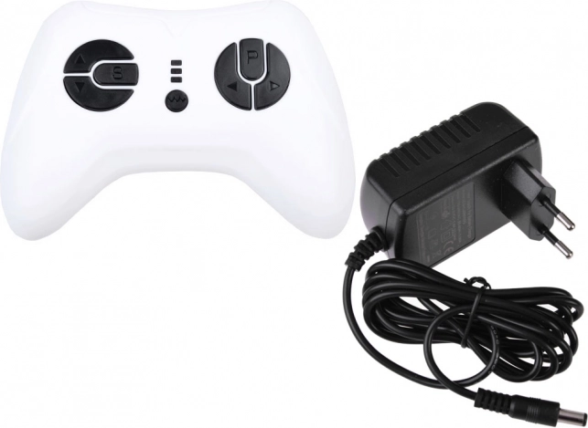 - Pilot 2,4 GHz (przód/tył, lewo/prawo, możliwość awaryjnego zatrzymania)