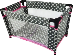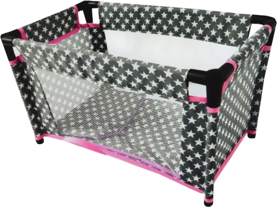 Stylowe dziecięce łóżeczko dla lalek w połączeniu szarości, bieli i różu ze wzorem gwiazdek to perfekcyjny dodatek do dziecięcego pokoju. Stabilna rama z aluminium z plastikowymi łącznikami oraz siatkowe boki zapewniają bezpieczną i realistyczną zabawę. W komplecie miękkie tekstylia pościelowe dla większego komfortu lalki.