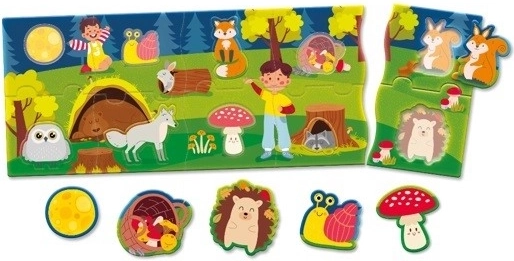 - Puzzle zawierają barwne ilustracje lasu, które inspirują i pobudzają dziecięcą wyobraźnię.