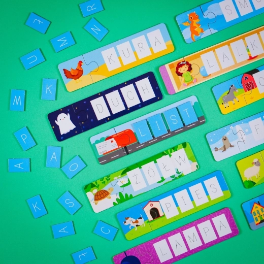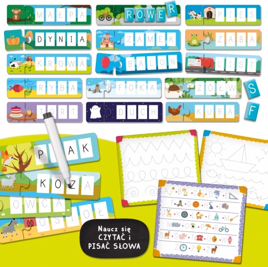 Zbiór 10 edukacyjnych gier do nauki czytania i pisania! Mnóstwo aktywności edukacyjnych dla przedszkolaków, które wzbogacą ich słownictwo.