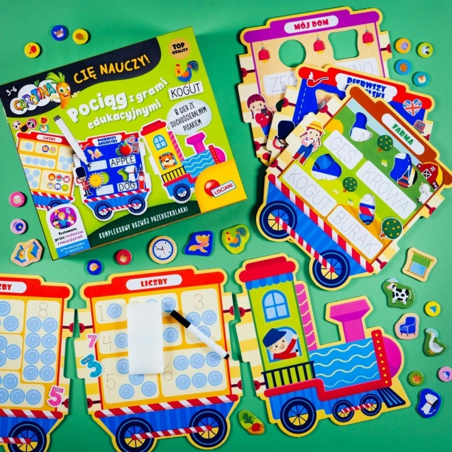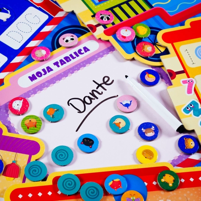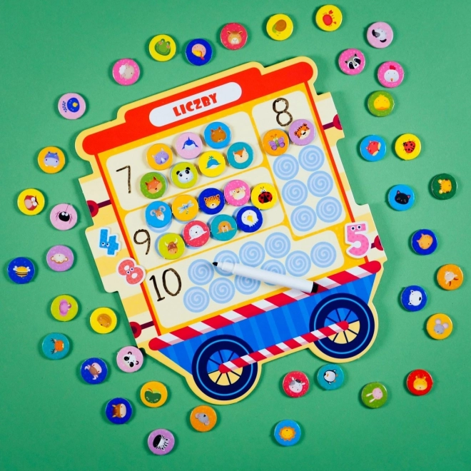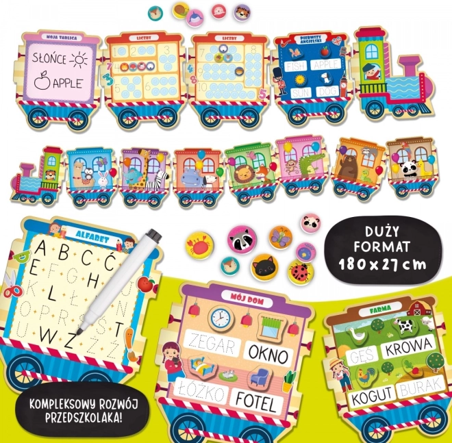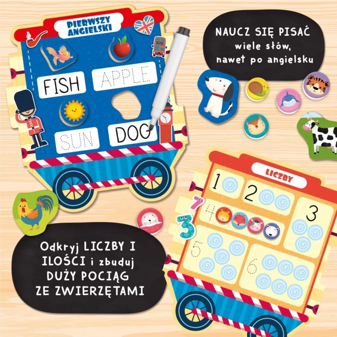 Zabawny pociąg z mnóstwem edukacyjnych aktywności! Każdy wagon oferuje inną grę. Dzieci mogą odkrywać alfabet, liczby, pierwsze słówka po angielsku i wiele więcej!