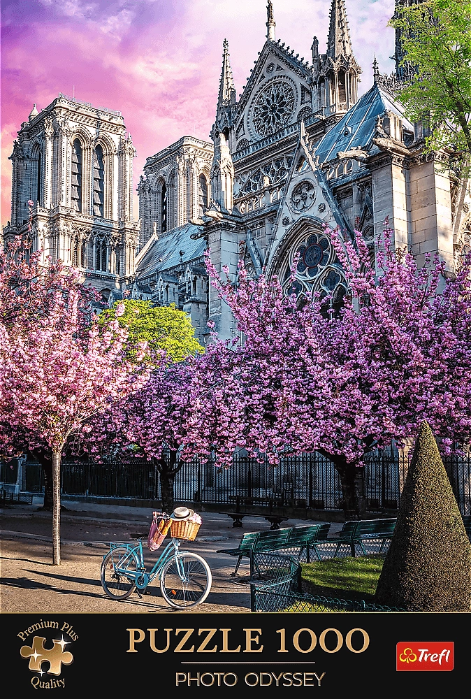 Odkryj piękno Paryża z motywem katedry Notre-Dame uchwyconej w delikatnych barwach wiosennych wiśni. Puzzle z 1000 elementów wyróżniają się ostrym nadrukiem i wiernymi detalami, dzięki czemu układanie jest przyjemne od pierwszego do ostatniego elementu. Po złożeniu powstaje obraz o wymiarach 48 × 68,3 cm, który świetnie nadaje się do oprawienia.