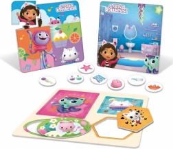 Ten barwny zestaw aktywności wprowadza dzieci w świat Gabinina magicznego domku pełen kolorów, postaci i pomysłowych zadań. Poprzez zabawę dzieci trenują spostrzegawczość, sortowanie kształtów i kolorów, parowanie oraz koordynację ręka–oko. Elementy są zaprojektowane dla małych rączek i wspierają samodzielne odkrywanie.