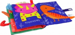 Odkryj pierwsze czytanie pełne dinozabawy! Ta miękka książeczka materiałowa z ośmioma stronami i kolorowymi ilustracjami zachęca do odkrywania i wspiera rozwój sensoryczny, motorykę małą oraz pierwszą angielszczyznę. Dzięki bezpiecznemu zapięciu na rzep łatwo ją przechowywać i jest idealna w podróży.