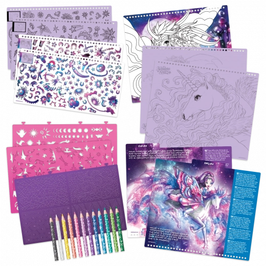 Wejdź do świata NEBULOUS STARS i pozwól rozkwitnąć swojej wyobraźni. Fioletowe kolorowanki z motywami fantastycznych koni zapewniają godziny kojącej, a jednocześnie inspirującej zabawy. Dzięki bogatemu wyposażeniu i inspirującym wskazówkom dzieci z łatwością stworzą oryginalne i efektowne ilustracje.