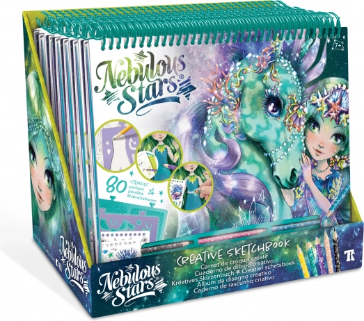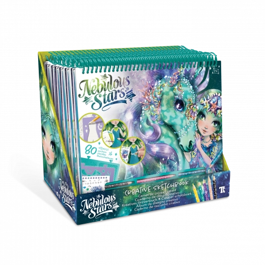 Odkryj magiczny świat NEBULOUS STARS z kreatywnym szkicownikiem w zielonej odsłonie. Zestaw oferuje wszystko do tworzenia – od 250 naklejek, przez 12 kredek, po 80 szablonów i 35 arkuszy z obrazkami. Dzięki instrukcjom 12 technik rysunkowych dzieci rozwijają wyobraźnię, małą motorykę i wyczucie kolorów. Idealny prezent dla małych artystek od 7 lat.