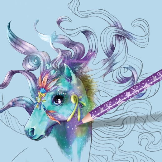 W opakowaniu znajdziesz barwną paletę przyborów i dodatków plastycznych, dzięki którym dzieci mogą odrysowywać, kolorować, rysować i przyklejać. Dzięki prostym instrukcjom krok po kroku szybko opanują nowe techniki i stworzą piękne obrazki inspirowane magicznym światem zwierząt.