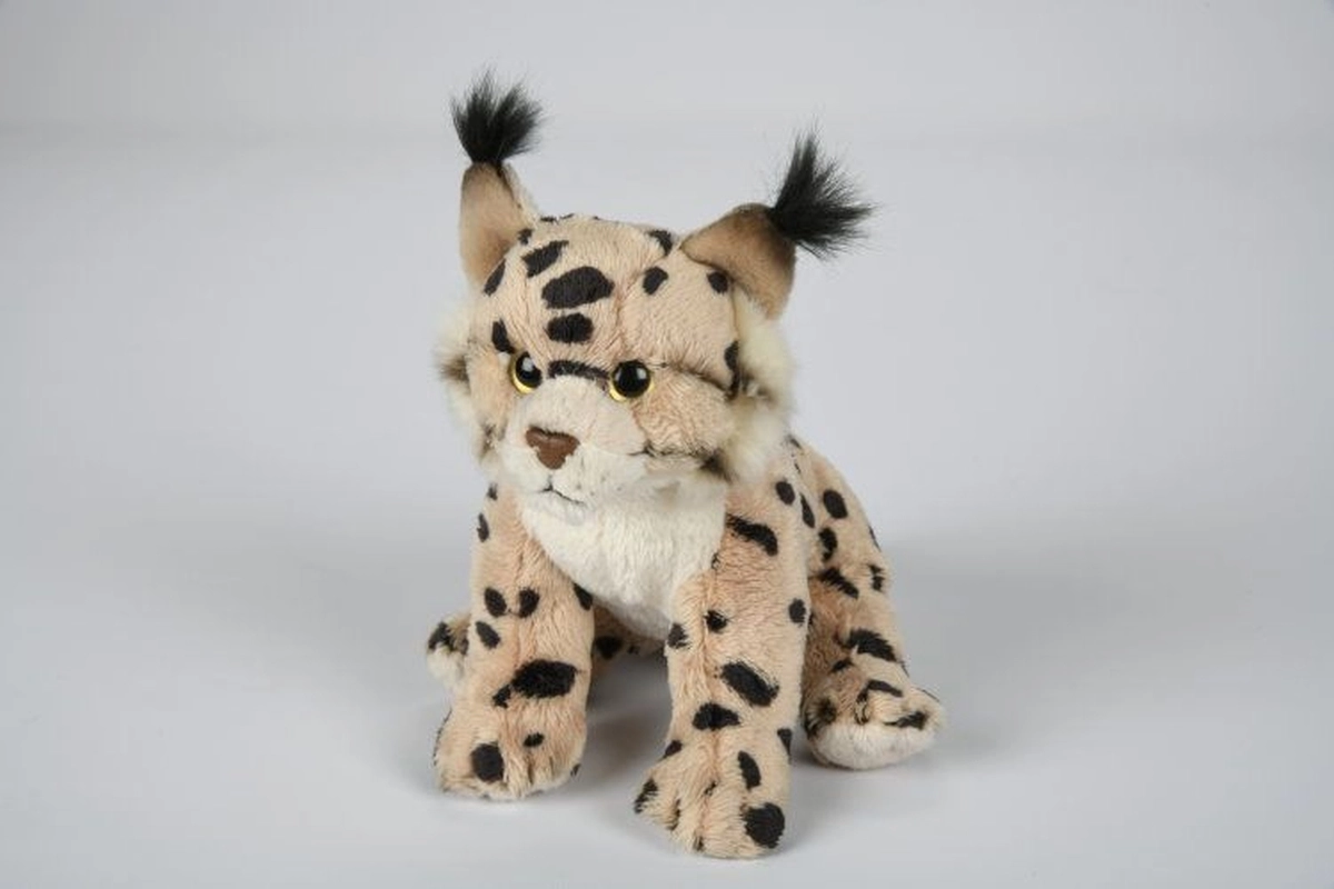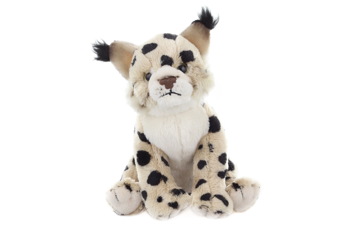 Pluszowy ryś o wymiarach ok. 17 × 13 cm. Wiek 0+