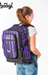 Szkolny plecak CUBIC WEDNESDAY łączy wyrazisty design w czarno‑fioletowe pasy z przemyślaną ergonomią dla codziennej wygody. Dzięki w pełni regulowanym paskom ramiennym, piersiowym i bocznym kompresyjnym łatwo dopasujesz plecak do sylwetki, a oddychające plecy odciążą noszenie nawet przy pełnym obciążeniu.