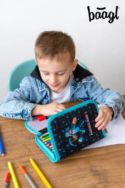 Szkolny piórnik Minecraft z motywem niebieskiego topora