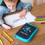 Pikselowane topory Minecraft nadają temu piórnikowi wyjątkowy, gamingowy charakter.