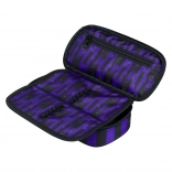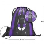 Zestaw Cubic Wednesday obejmuje stylowy plecak, praktyczny piórnik oraz worek na obuwie, wszystko w nowoczesnym designie z czarnymi i fioletowymi pasami. Plecak zaprojektowano z myślą o ergonomii, natomiast piórnik i worek ułatwiają organizację przyborów szkolnych i akcesoriów do czasu wolnego.