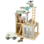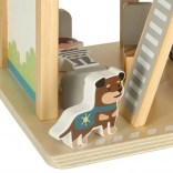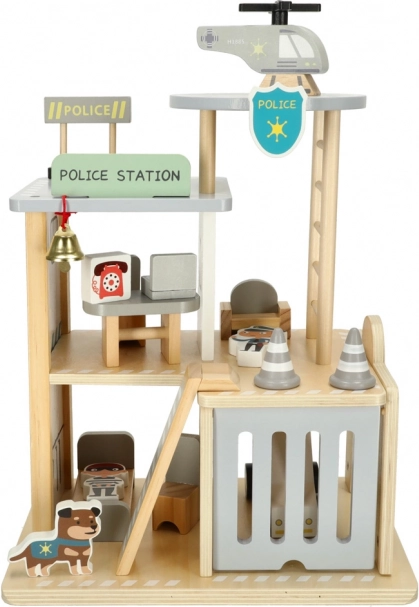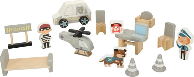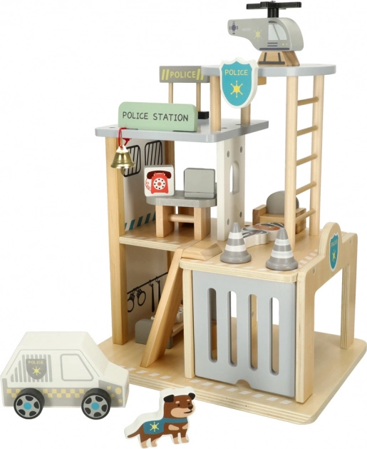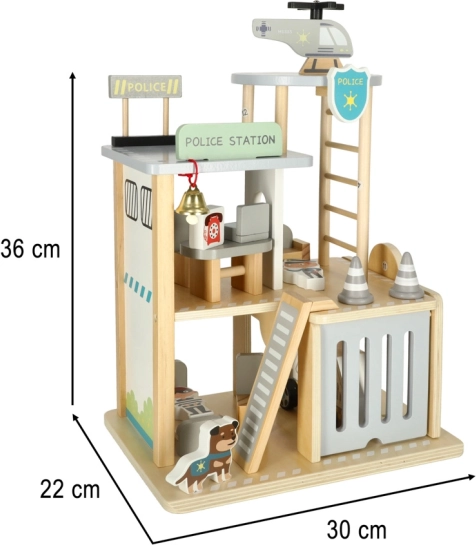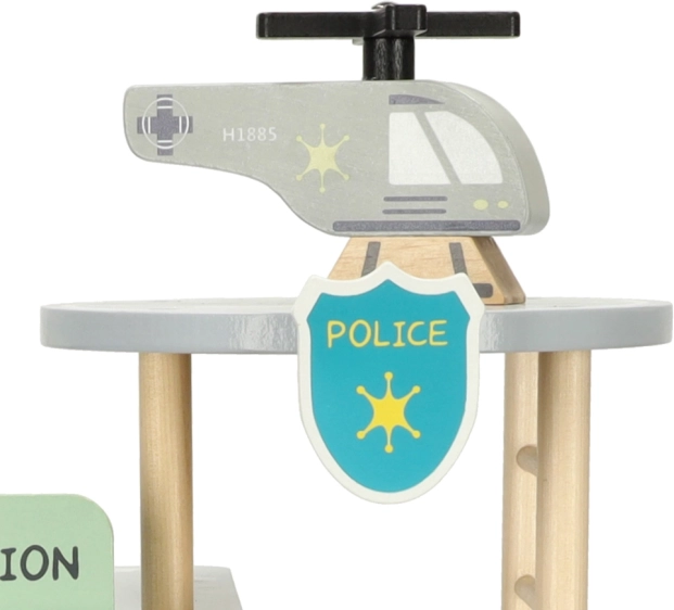 Odkryj drewniany policyjny kompleks dla małych stróżów prawa: trzypiętrową stację z garażem, celą, biurem i lądowiskiem dla helikoptera. Zestaw wykonany jest z wysokiej jakości drewna i zapewnia godziny kreatywnej zabawy, rozwija motorykę małą i wspiera zabawy w odgrywanie ról. Minimalistyczny design w naturalnym drewnie doskonale pasuje do pokoju dziecięcego.
