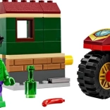 Mała konstrukcja z funkcją zawalenia wzmacnia kreatywność: najpierw demolka z Hulkiem, potem odbudowa i zabawa dalej.