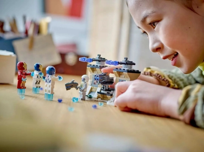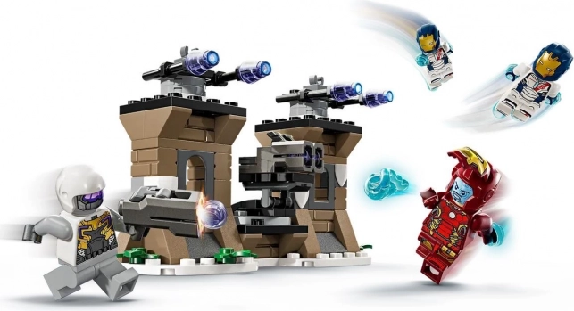 Ufortyfikowana baza HYDRA oferuje obrotową podłogę z 2 miotaczami klocków, a na wieżach znajdują się niefunkcjonalne wyrzutnie rakiet dla autentycznego wyglądu. Minifigurka IRON MAN ma otwierany wizjer i repulsor, żołnierz HYDRA dysponuje miotaczem. Aplikacja LEGO Builder dodaje interaktywne instrukcje i podglądy 3D.
