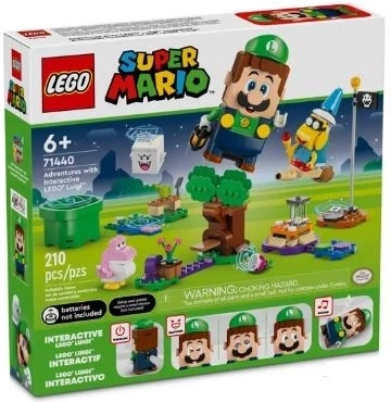 LEGO Super Mario Przygody z interaktywną figurką Luigi oferują nieograniczone możliwości twórczej gry. Dołącz do Luigiego na ścieżce od rury startowej do końcowego słupka i zbieraj cyfrowe reakcje i monety.
