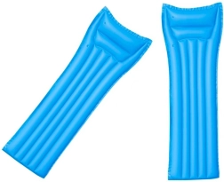 Ten plażowy materac idealnie sprawdzi się nad basenem i jeziorem. Dzięki zintegrowanej poduszce zapewnia przyjemne podparcie głowy, a solidny materiał PVC gwarantuje długą żywotność i stabilność na wodzie. Klasyczny kształt i uniwersalny niebieski kolor pasują do każdego letniego wyposażenia.