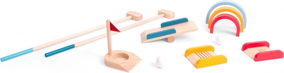 Zabawna rodzinna gra dla 1–4 graczy: drewniany zestaw do minigolfa z przeszkodami, który rozwija koordynację ręka–oko, koncentrację i wytrwałość. Idealny na ogród i do parku, zawiera 2 kije golfowe, 2 piłeczki oraz 7 kolorowych przeszkód, zapewniając nieskończoną dawkę ruchu i zabawy bez ekranów.