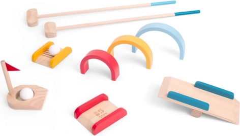 Odkryj magię minigolfa w dziecięcym rozmiarze. Ten wysokiej jakości drewniany zestaw oferuje łatwą do zrozumienia grę dla 1–4 graczy od 4. roku życia. Dzięki prostemu montażowi i barwnym przeszkodom dzieci będą się świetnie bawić aktywnie w domu i na dworze, jednocześnie naturalnie wzmacniając motorykę małą i spostrzegawczość.