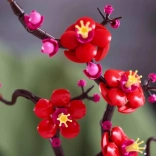 Realistyczna gałąź z intensywnie czerwonymi i różowymi kwiatami doda wnętrzu koloru i spokoju – bez podlewania i pielęgnacji.
